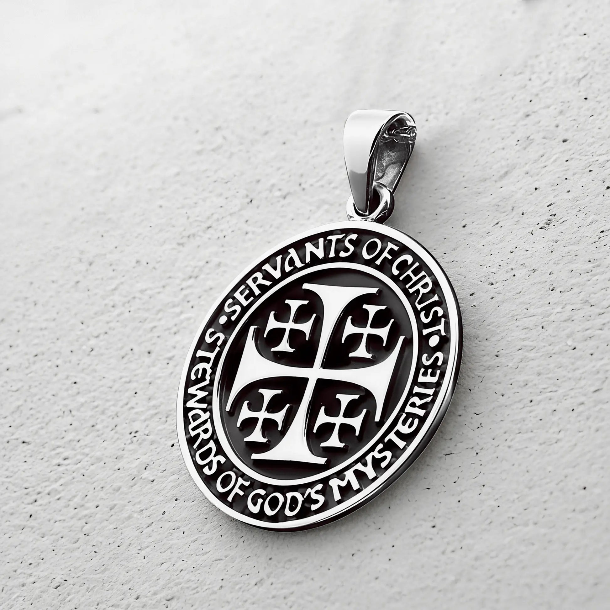 Colgante cruz de Jerusalén, sirviente de cristo en plata 950